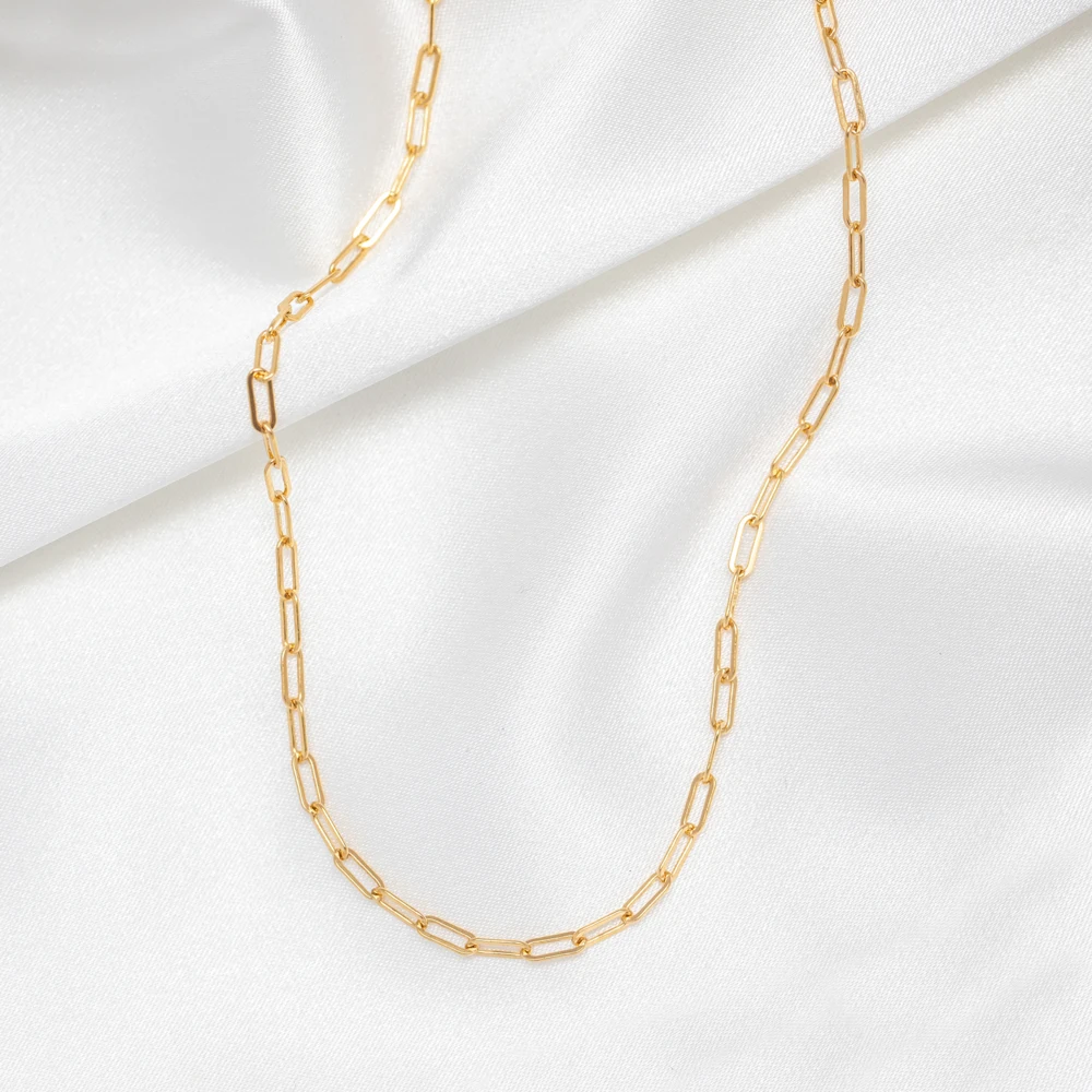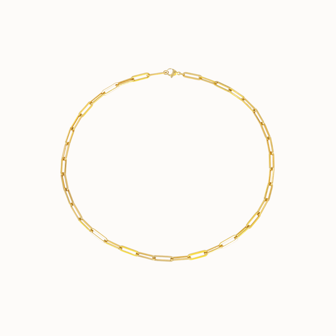 A 14K gold-plated stainless steel Cuban paperclip link choker necklace. Durable, trendy, and perfect for women’s fashion.